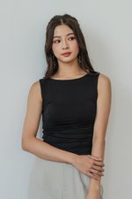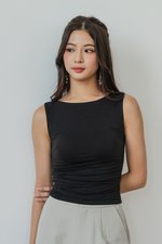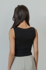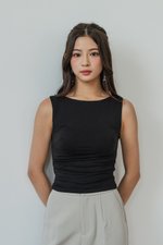 Rory Boat Neck Sleeveless Padded Top (Black)
