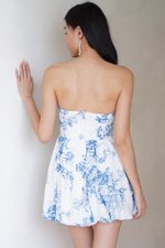 Roselle Padded Sweetheart Bubble Dress (Dark Blue White Floral)