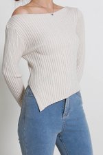 Sarah Boat Neck Knit Top (Greyish Oat)