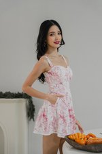 Seona Lace Padded Romper Dress (Pink Floral)
