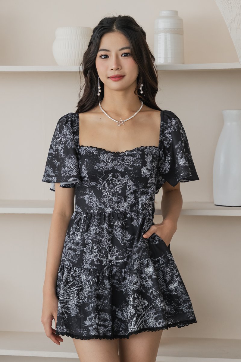 Seorenee Lace Padded Dress (French X Black)
