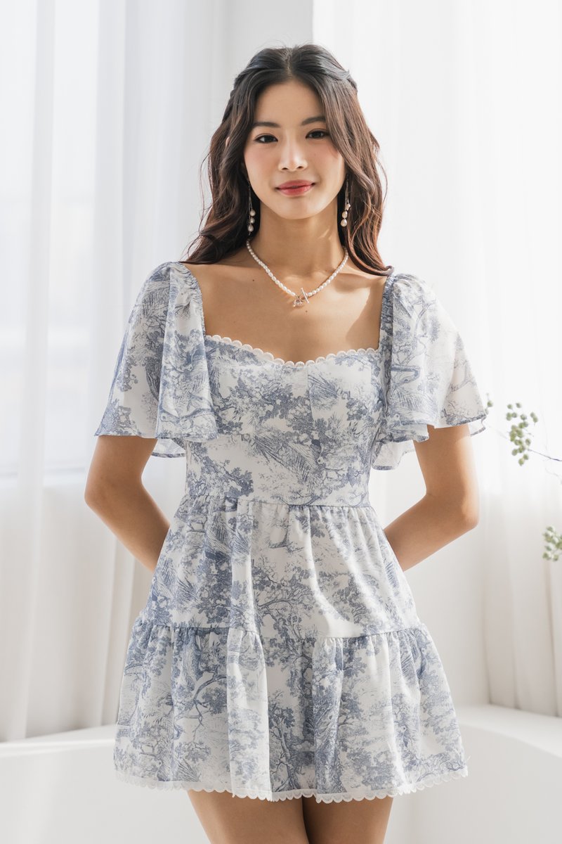 Seorenee Lace Padded Dress (French X Blue Grey)