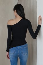 Shivan One Shoulder Long Sleeve Padded Top (Black)