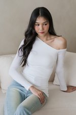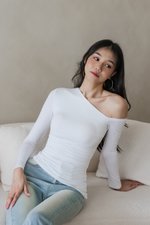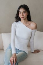 Shivan One Shoulder Long Sleeve Padded Top (White)