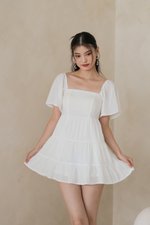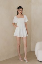 [SLEEVED] Kaelyn Padded Tier Romper Dress (White)