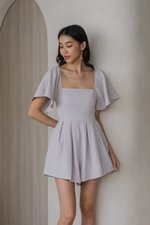 [SLEEVED] Lazier Pleated Romper (Ice Grey)