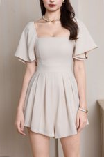 [SLEEVED] Lazier Pleated Romper (Ivory Beige)