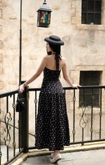 Soleira Floral Padded Midi Dress (Black Lilac Floral)