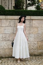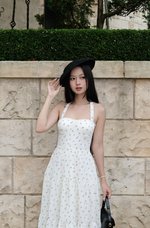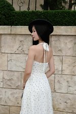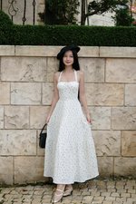 Soleira Floral Padded Midi Dress (Cream Blue Floral)