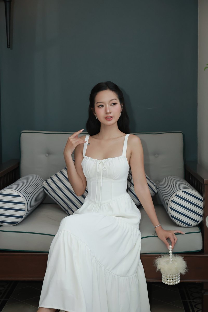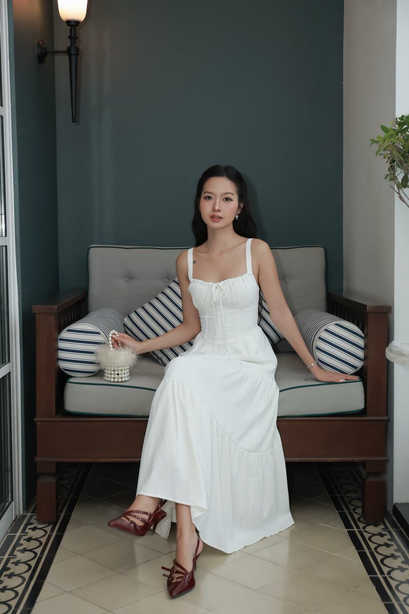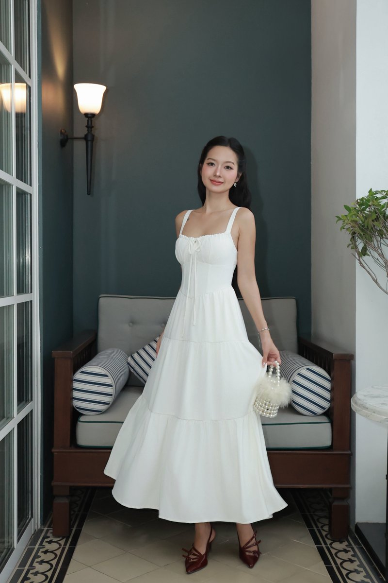 Suzie Padded Midi Dress (White)