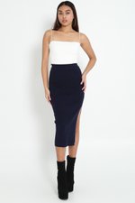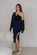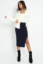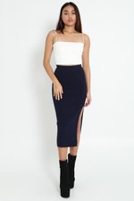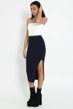 Tessa Slit Knit Midaxi Skirt (Navy)