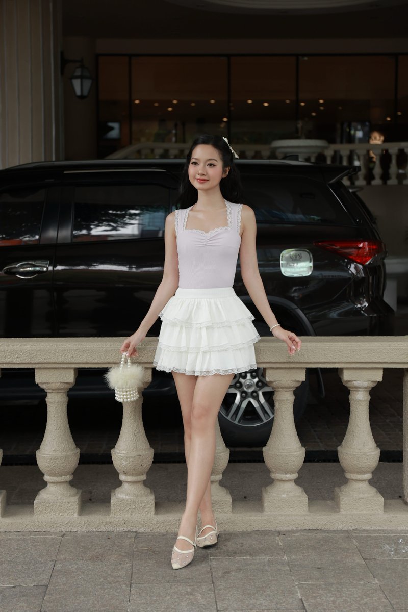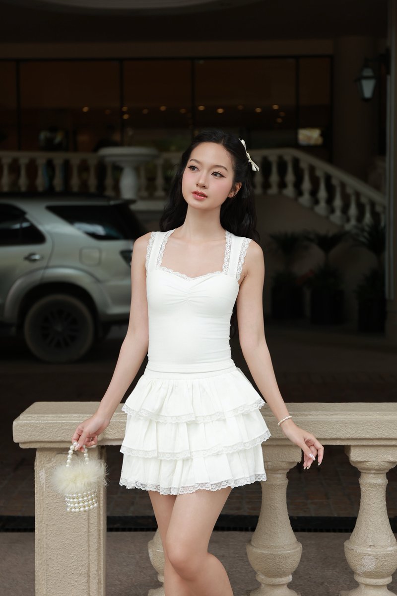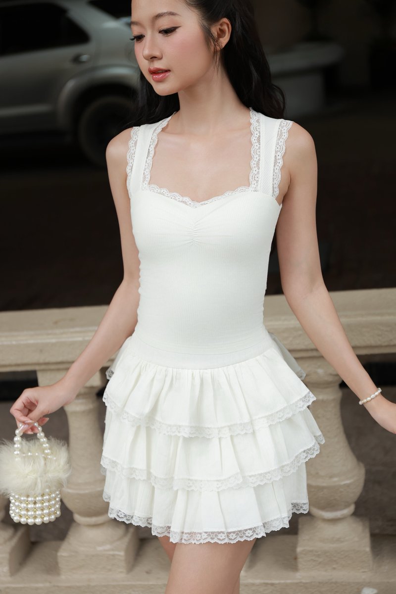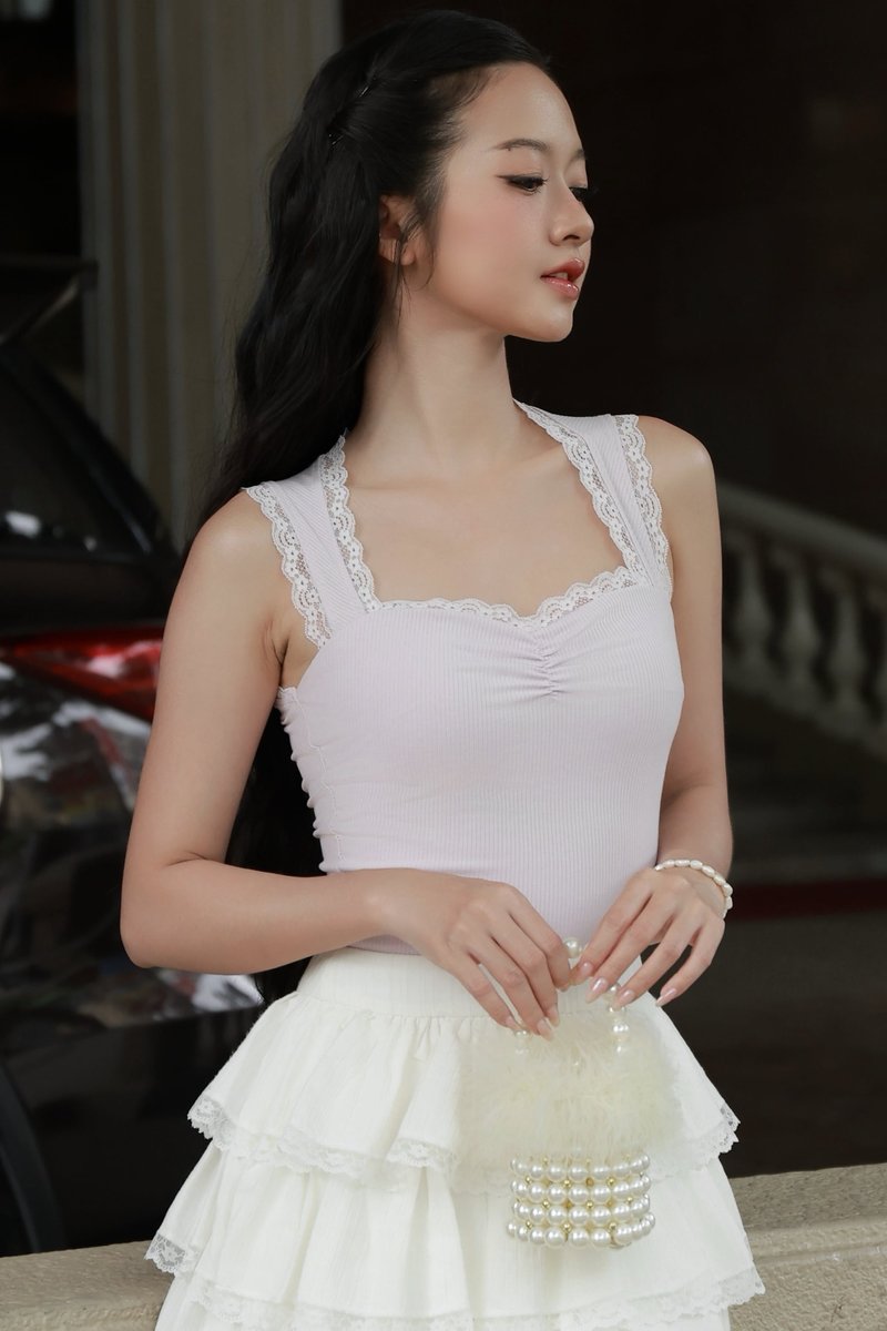 Tori Sweetheart Lace Ribbed Knit Padded Top