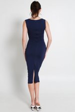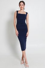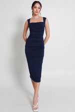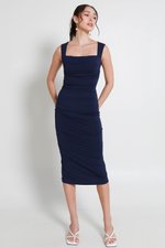 Tracey Queen Anne Padded Ruched Dress (Navy)