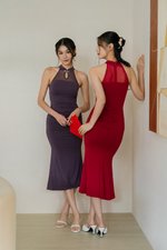 Yang Mesh Padded Midi Dress (Royal Purple)
